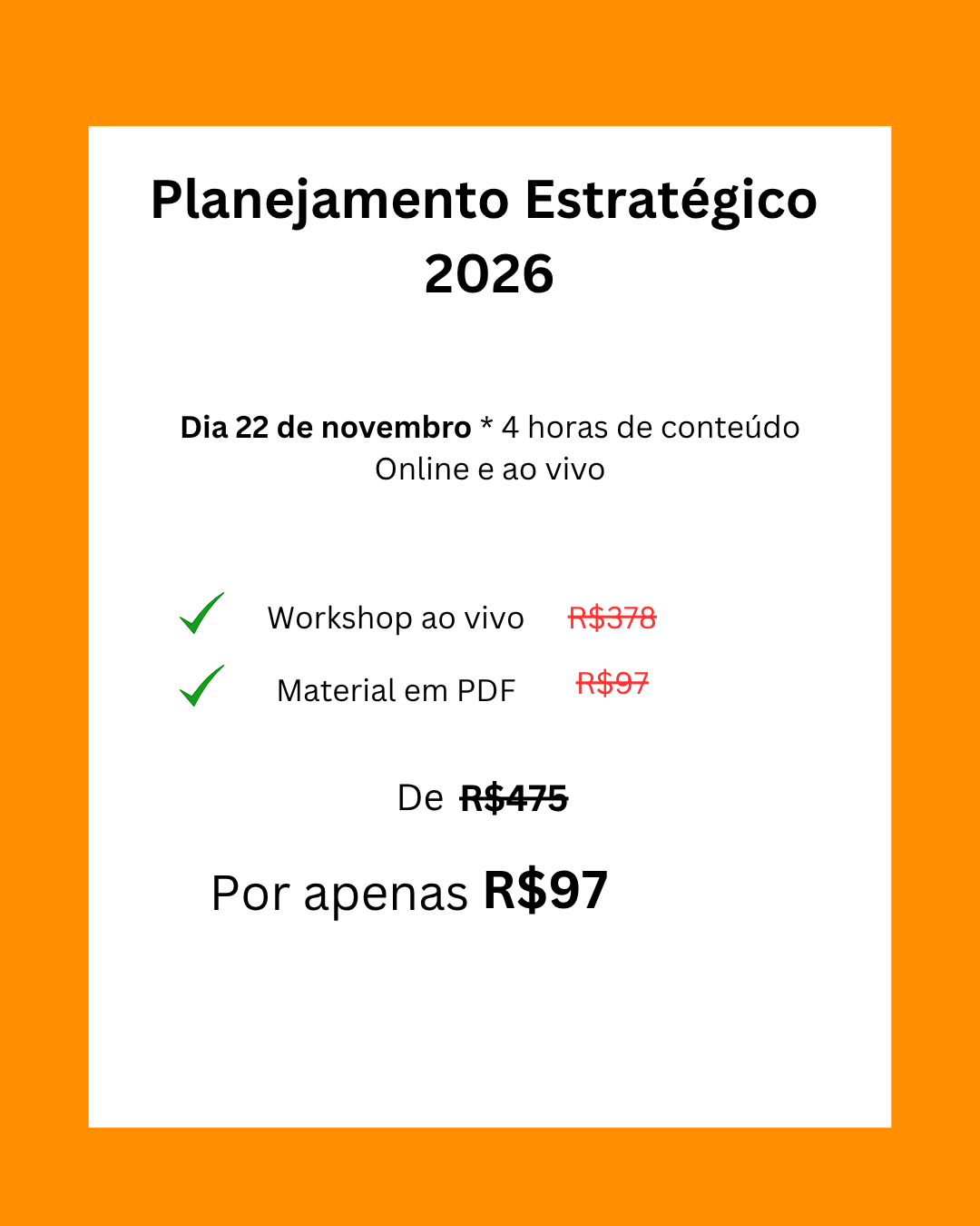 No Planejamento Estratégico 2026, você vai desenhar o seu próximo ano comigo, ao vivo, com técnicas validadas e aplicáveis, da visão à execução, do propósito ao calendário.